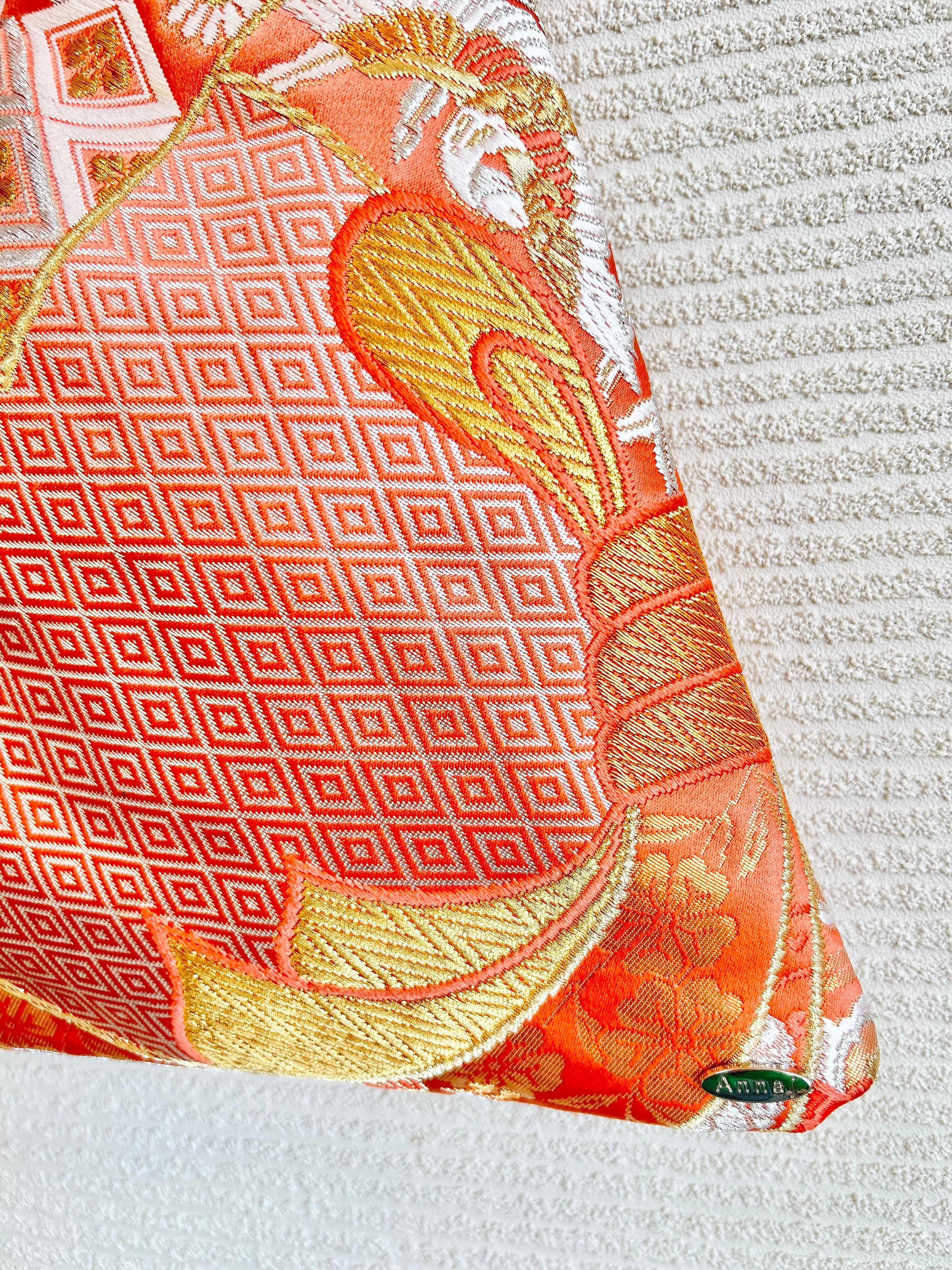 生地について : 使用している着物や帯や帯締めは以前使われていた、またはストックしていたものを使用しています。よって折りジワや小さなシミや汚れや傷や劣化などある場合があり、注意を払ってそれらを除いて使用はしておりますが、まれに残っているものもございます。時間の経過や古い時代のもの、新品ではないものをリサイクルし、アップサイクルしている、ということをご理解のほど、どうぞ宜しくお願い申し上げます。