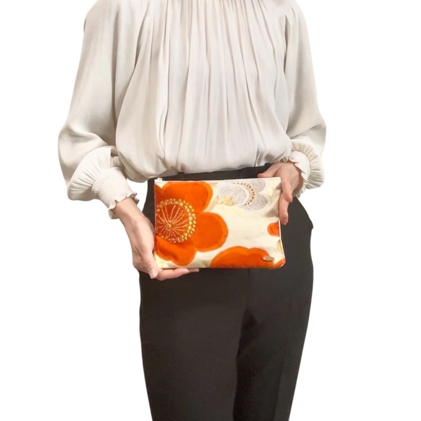 上質な帯をリメイクし、伝統の美しさを日常に取り入れたクラッチバッグです。職人が一点一点丁寧に仕立てた、世界にひとつだけのアイテム。