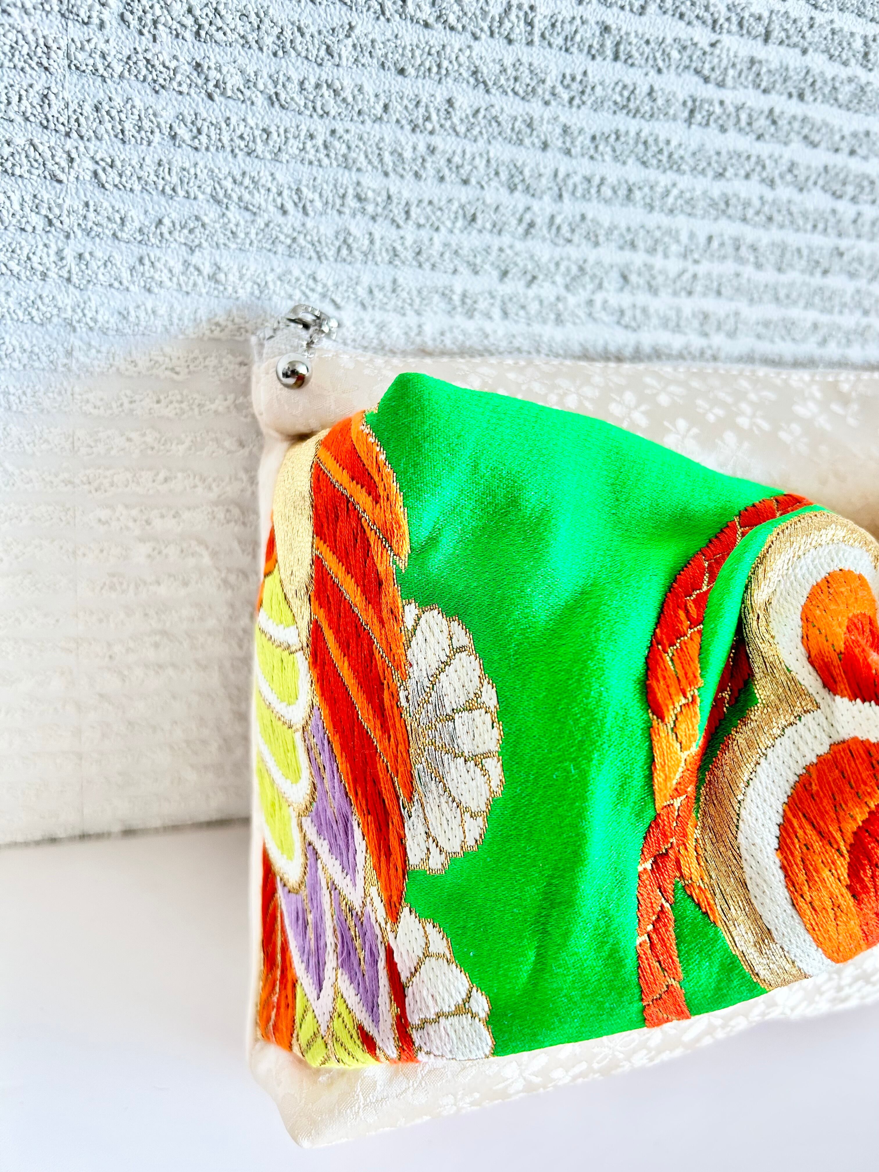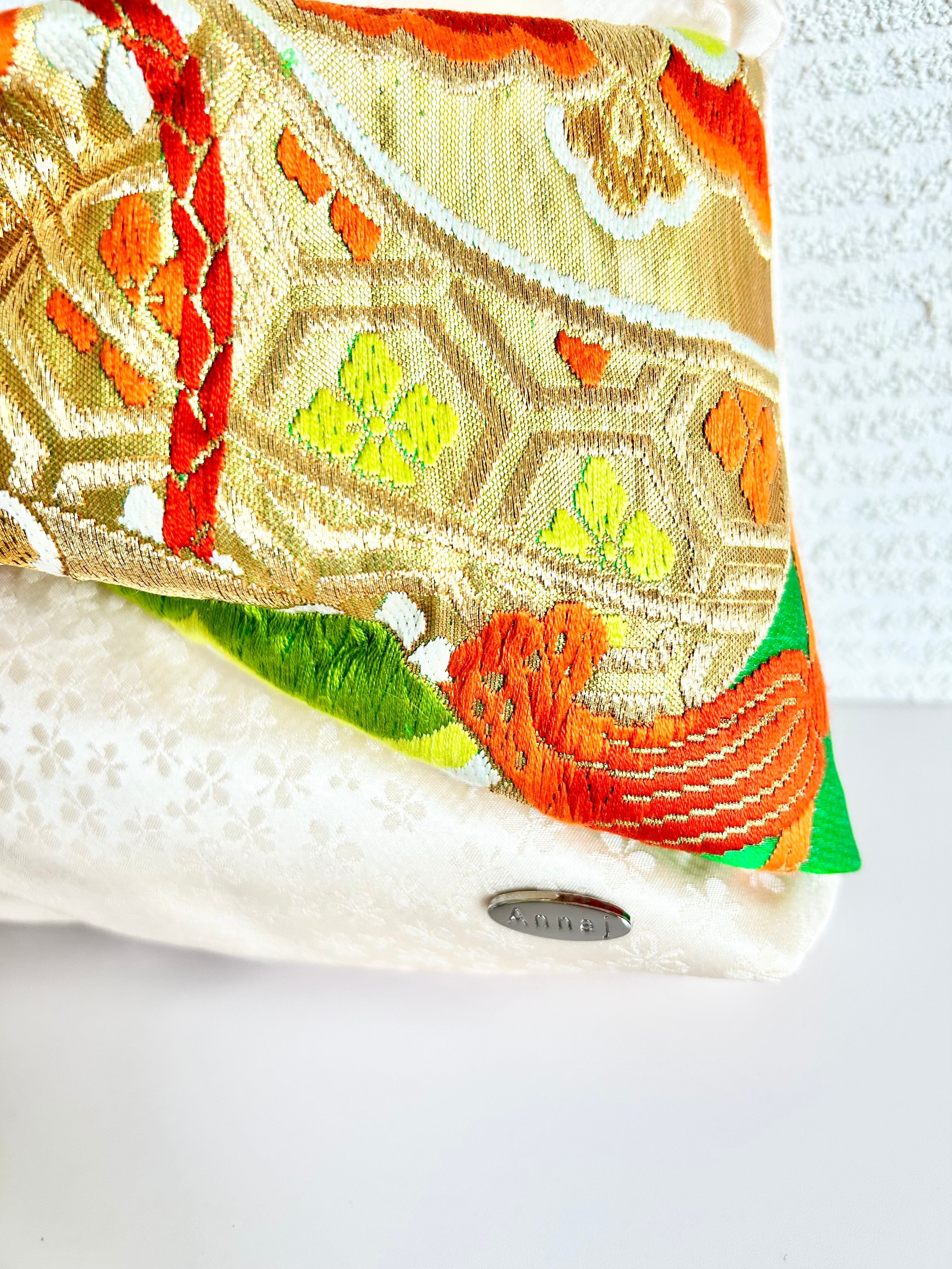 クラッチバッグとしても使えるハンドバッグは、フォーマルな場面にもカジュアルな場面にも合わせやすく、幅広いシーンで活躍します。和装の美しい柄や色合いが、コーディネートのアクセントになり、個性を際立たせます。