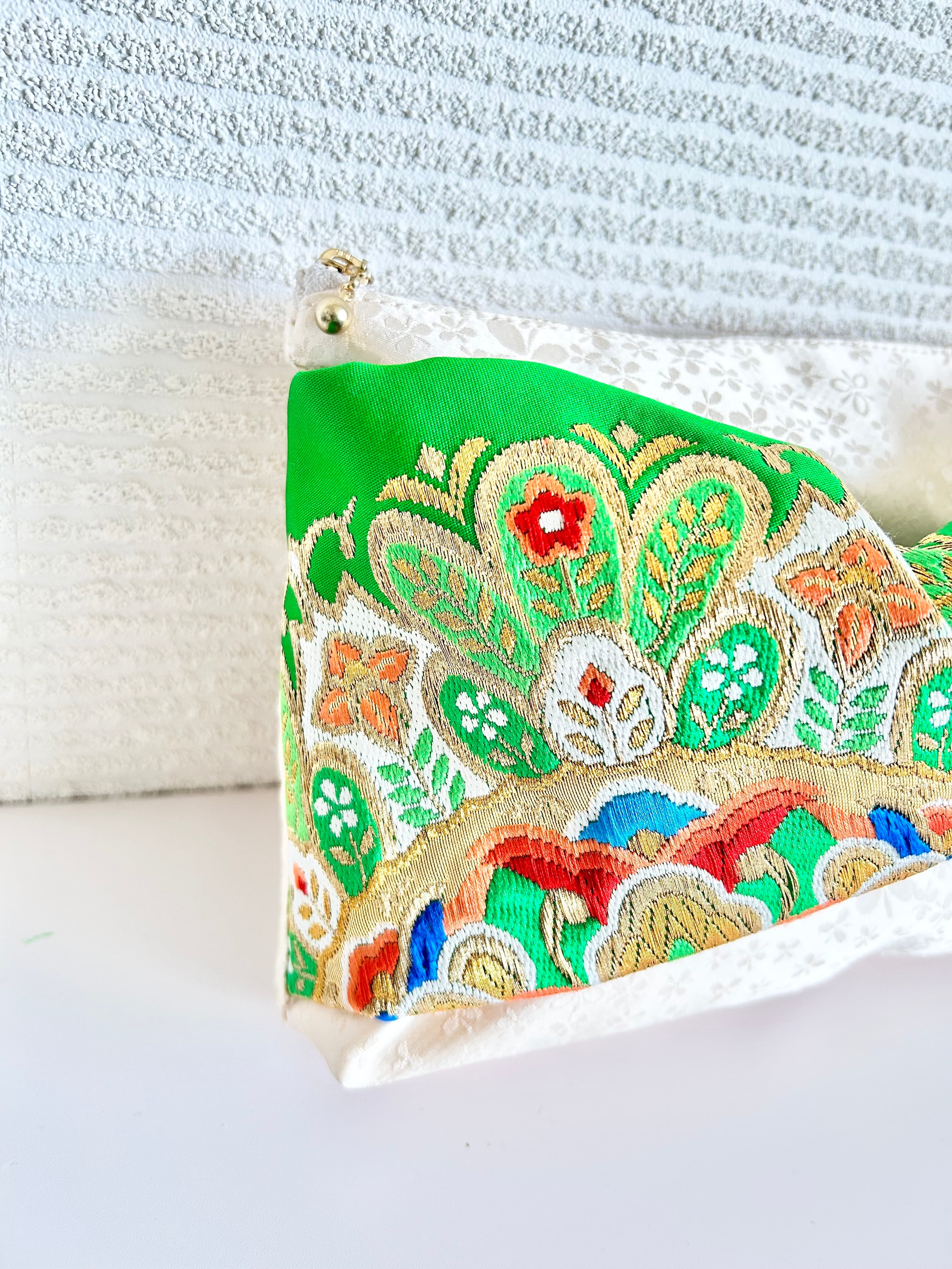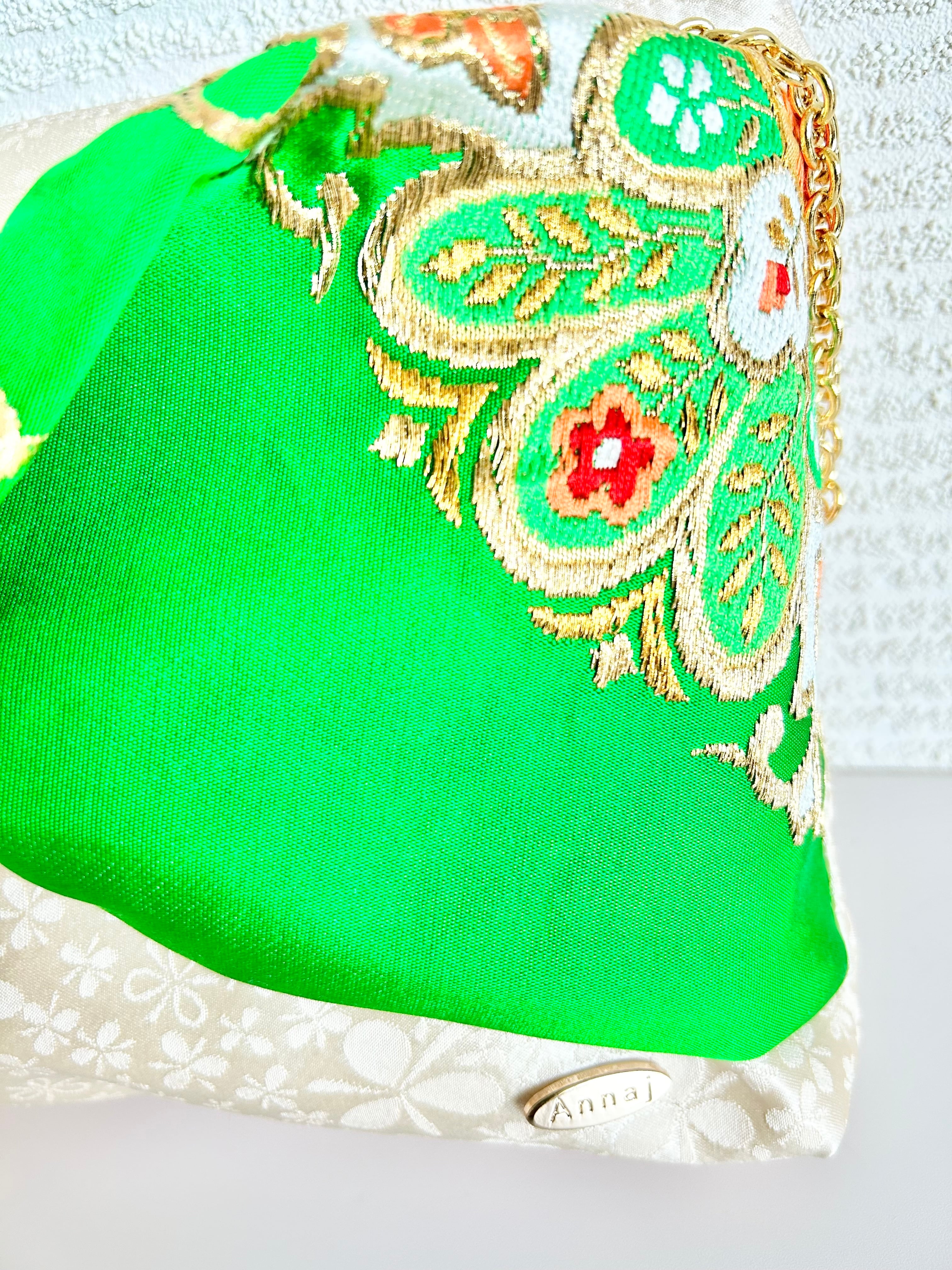 クラッチバッグとしても使えるハンドバッグは、フォーマルな場面にもカジュアルな場面にも合わせやすく、幅広いシーンで活躍します。和装の美しい柄や色合いが、コーディネートのアクセントになり、個性を際立たせます。