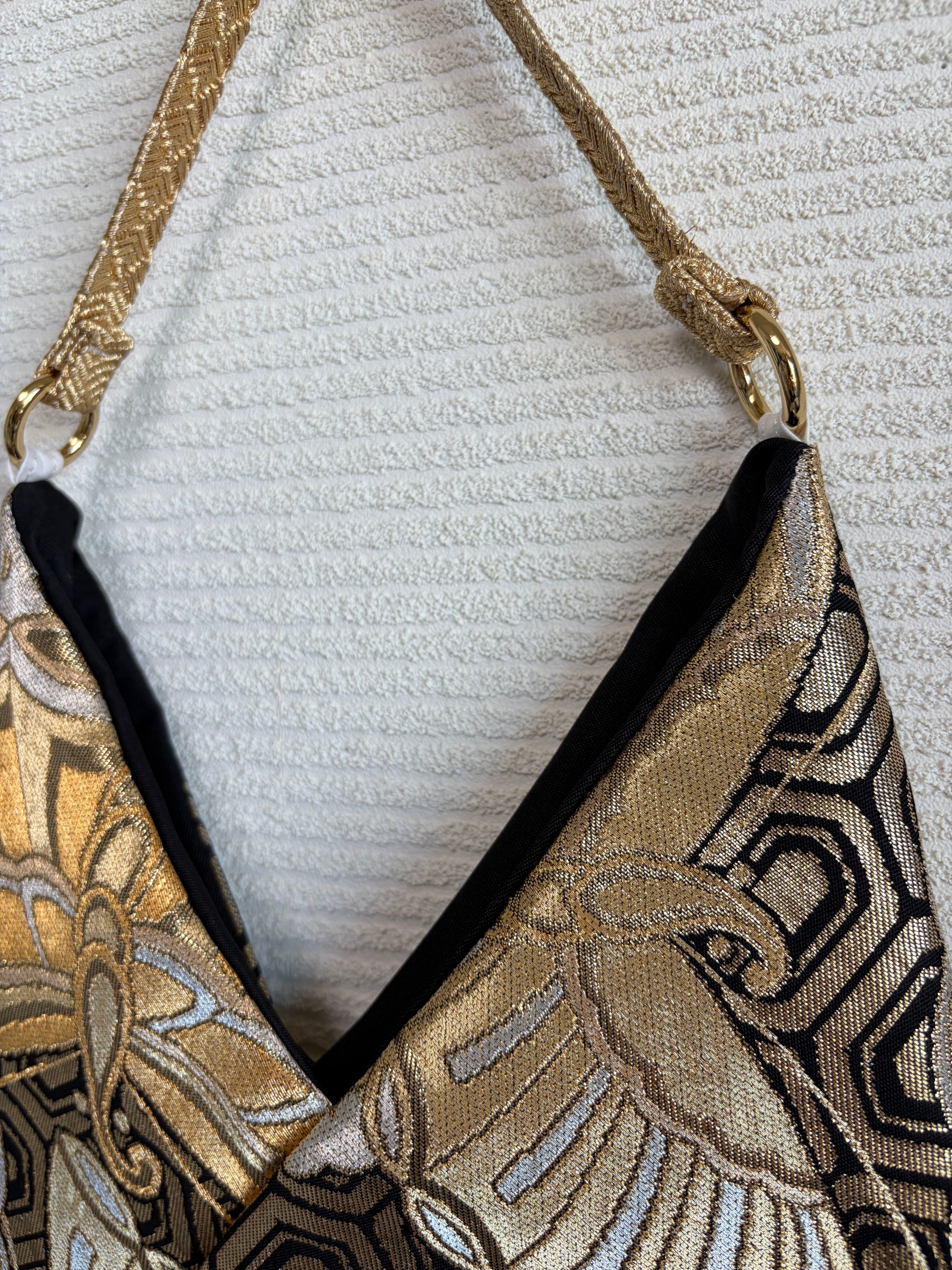 あずまバッグ大は、伝統的な帯を使ったアイテムでありながら、モダンなスタイルにもマッチするデザインとして、幅広い年齢層の方に愛されています。是非、お気に入りの一点ものバッグとしてお楽しみください。