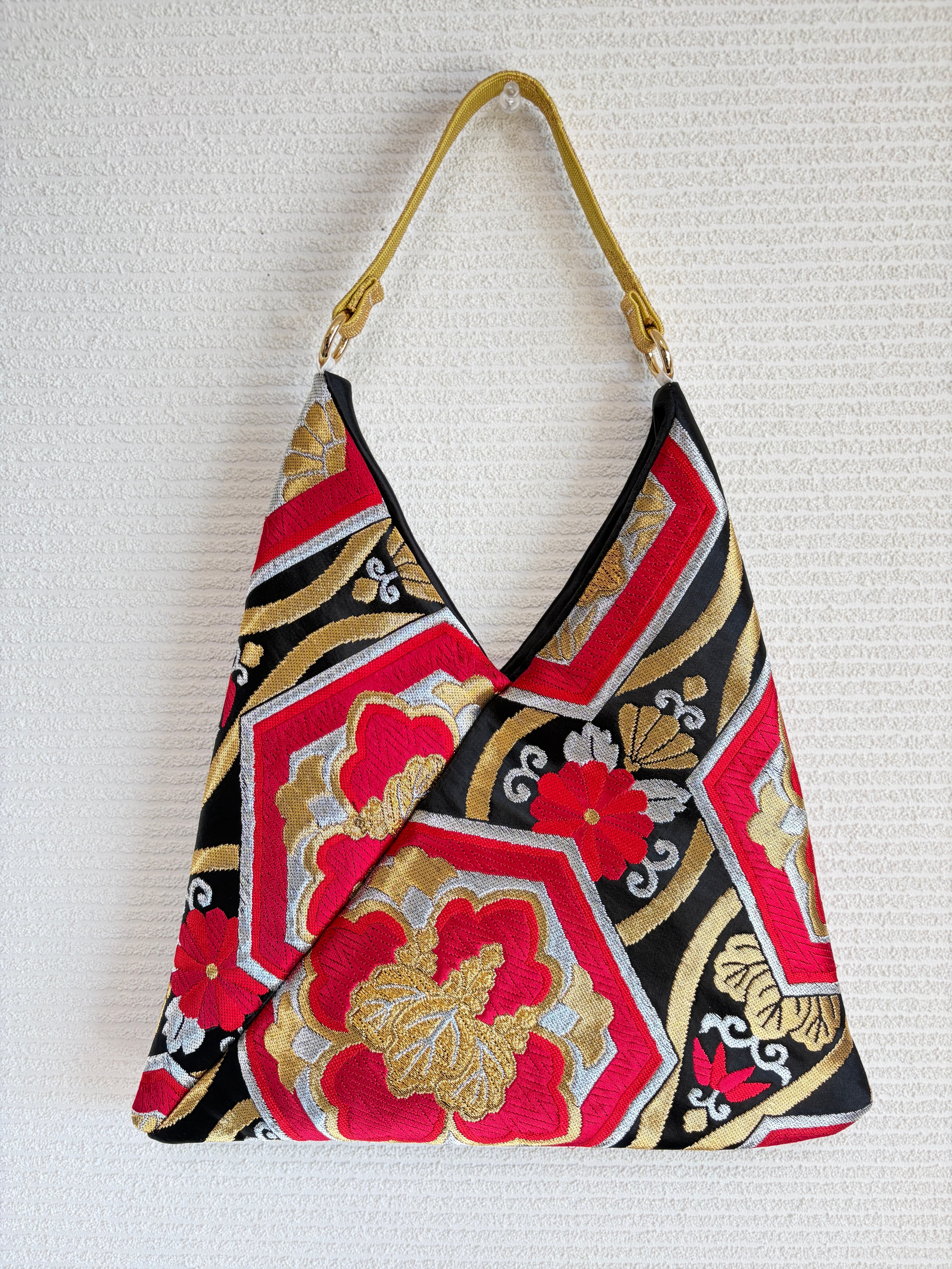 あずまバッグ大は、伝統的な帯を使ったアイテムでありながら、モダンなスタイルにもマッチするデザインとして、幅広い年齢層の方に愛されています。是非、お気に入りの一点ものバッグとしてお楽しみください。