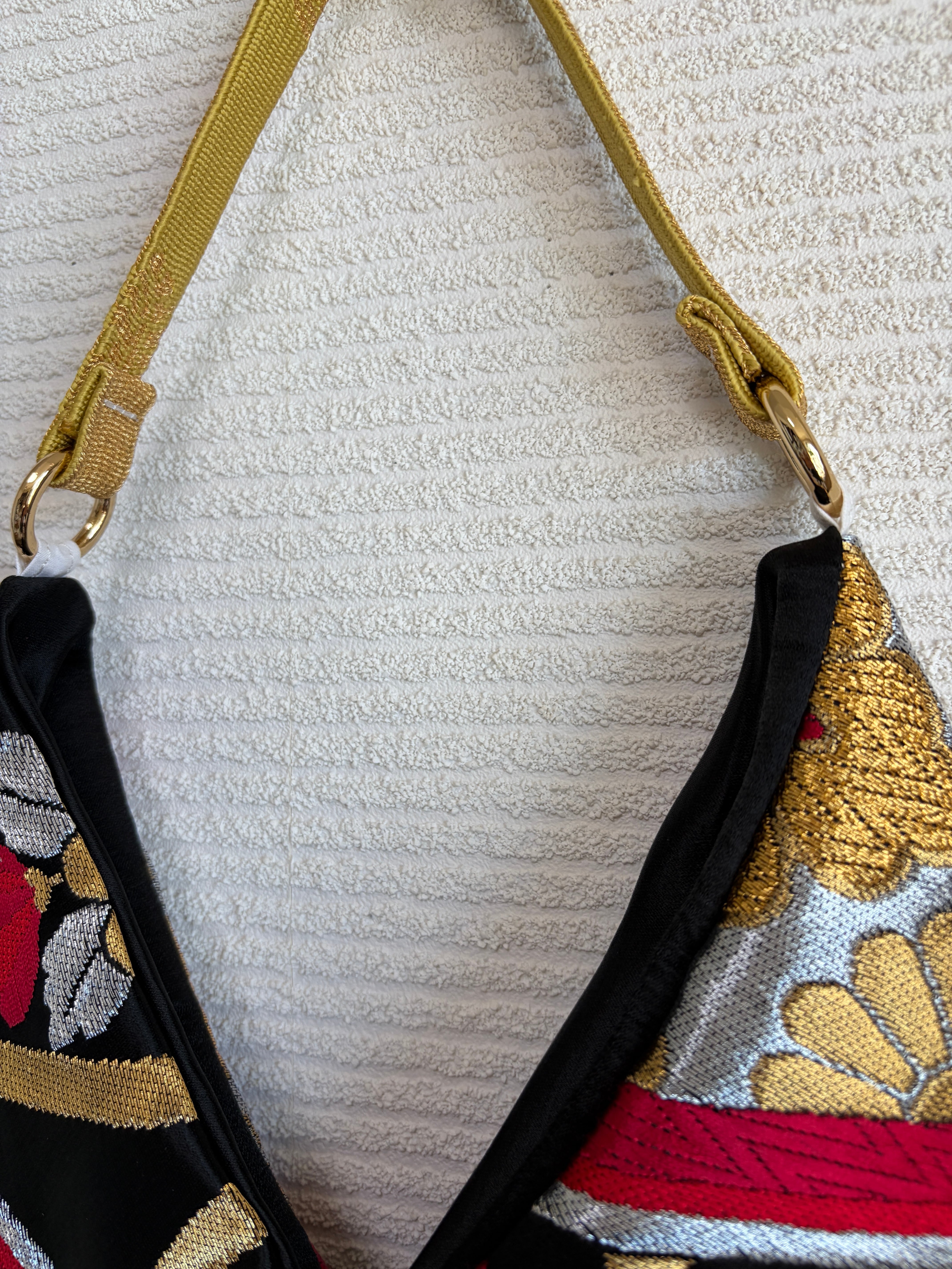 昭和のハレの日に使われた華やかな着物や帯を使用しています。今ではすでに生産が終了している貴重な素材や織を使用しているものもあります。