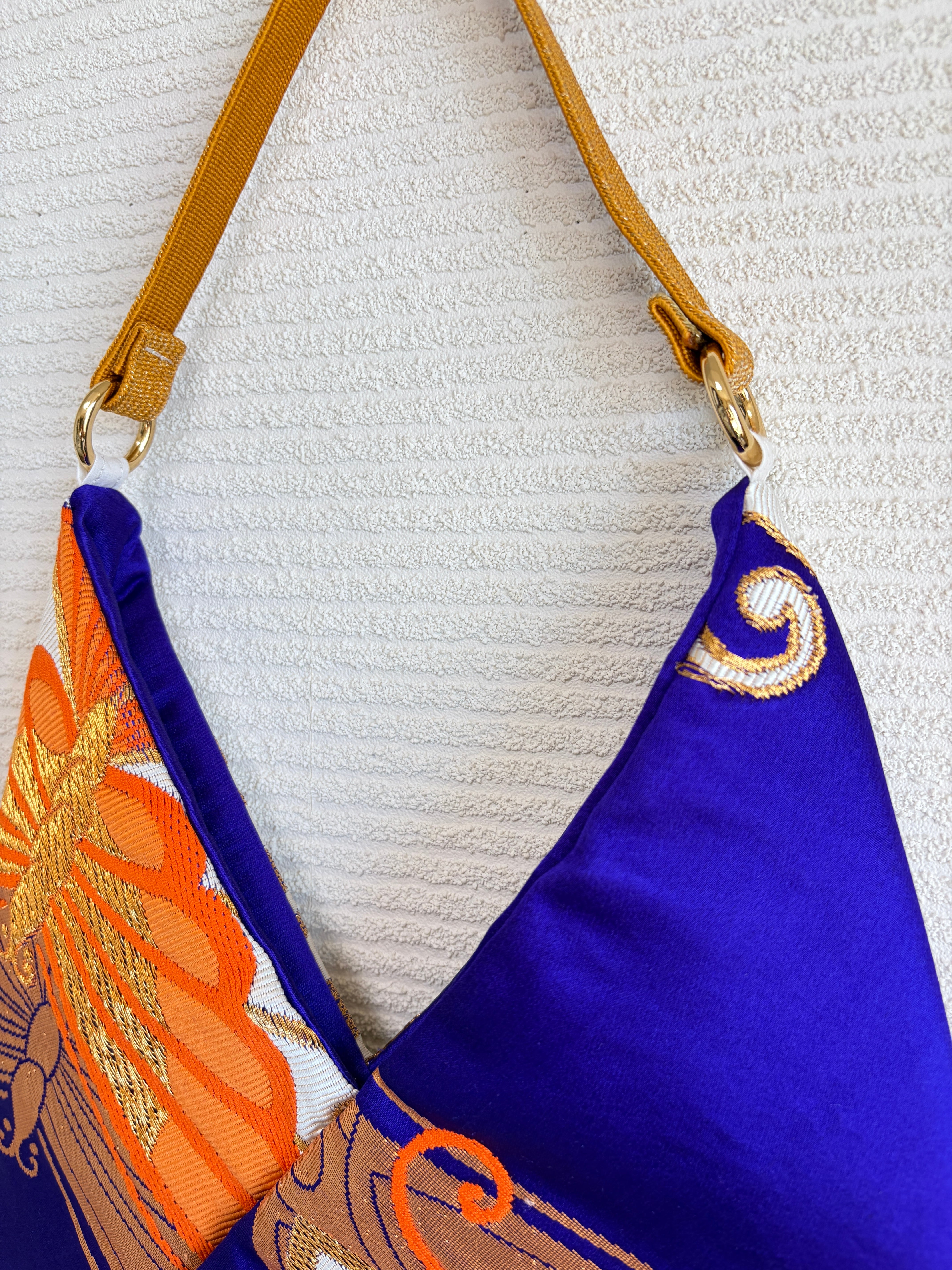 あずまバッグ大は、伝統的な帯を使ったアイテムでありながら、モダンなスタイルにもマッチするデザインとして、幅広い年齢層の方に愛されています。是非、お気に入りの一点ものバッグとしてお楽しみください。