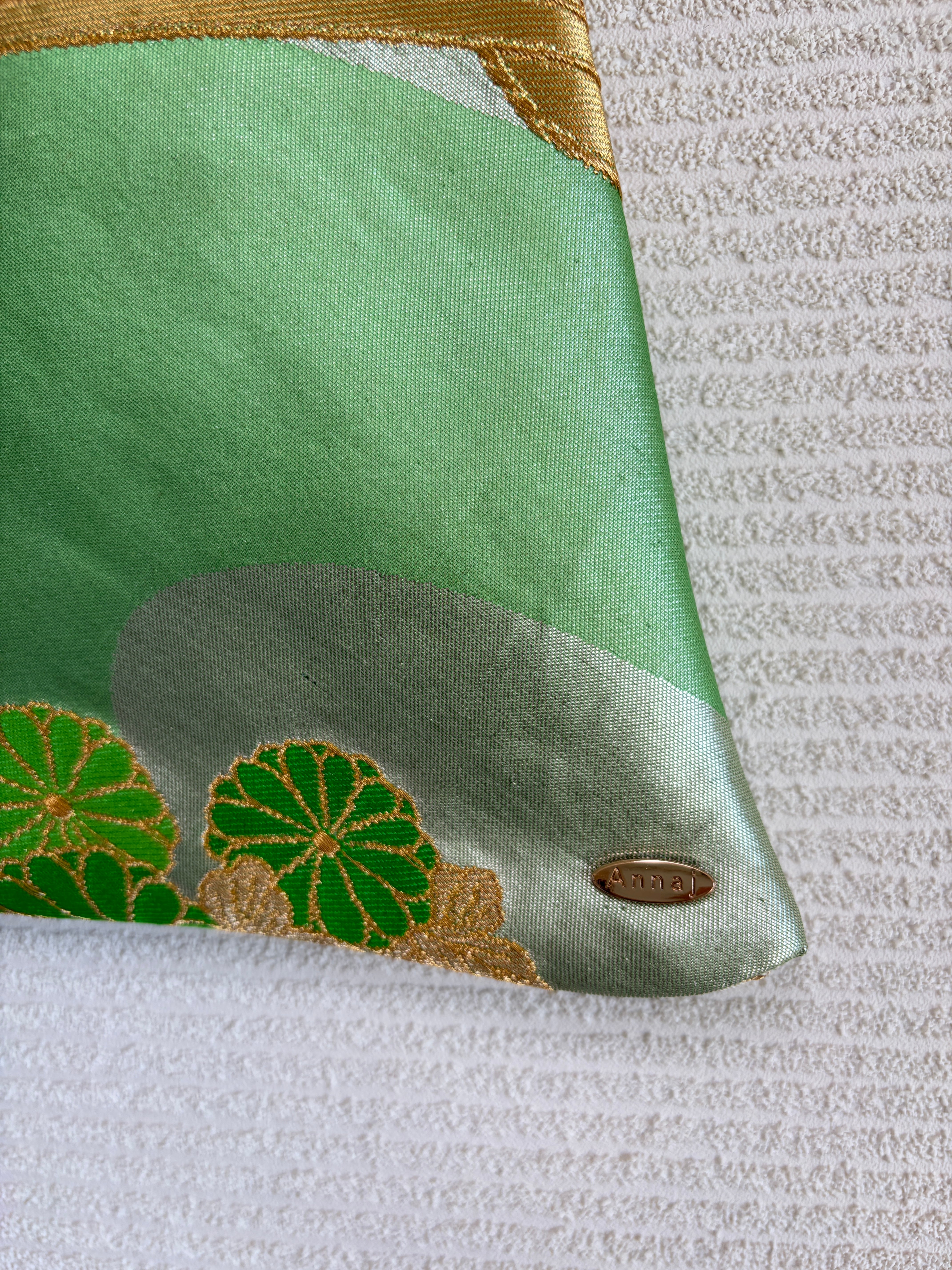 生地について : 使用している着物や帯や帯締めは以前使われていた、またはストックしていたものを使用しています。よって折りジワや小さなシミや汚れや傷や劣化などある場合があり、注意を払ってそれらを除いて使用はしておりますが、まれに残っているものもございます。時間の経過や古い時代のもの、新品ではないものをリサイクルし、アップサイクルしている、ということをご理解のほど、どうぞ宜しくお願い申し上げます。
