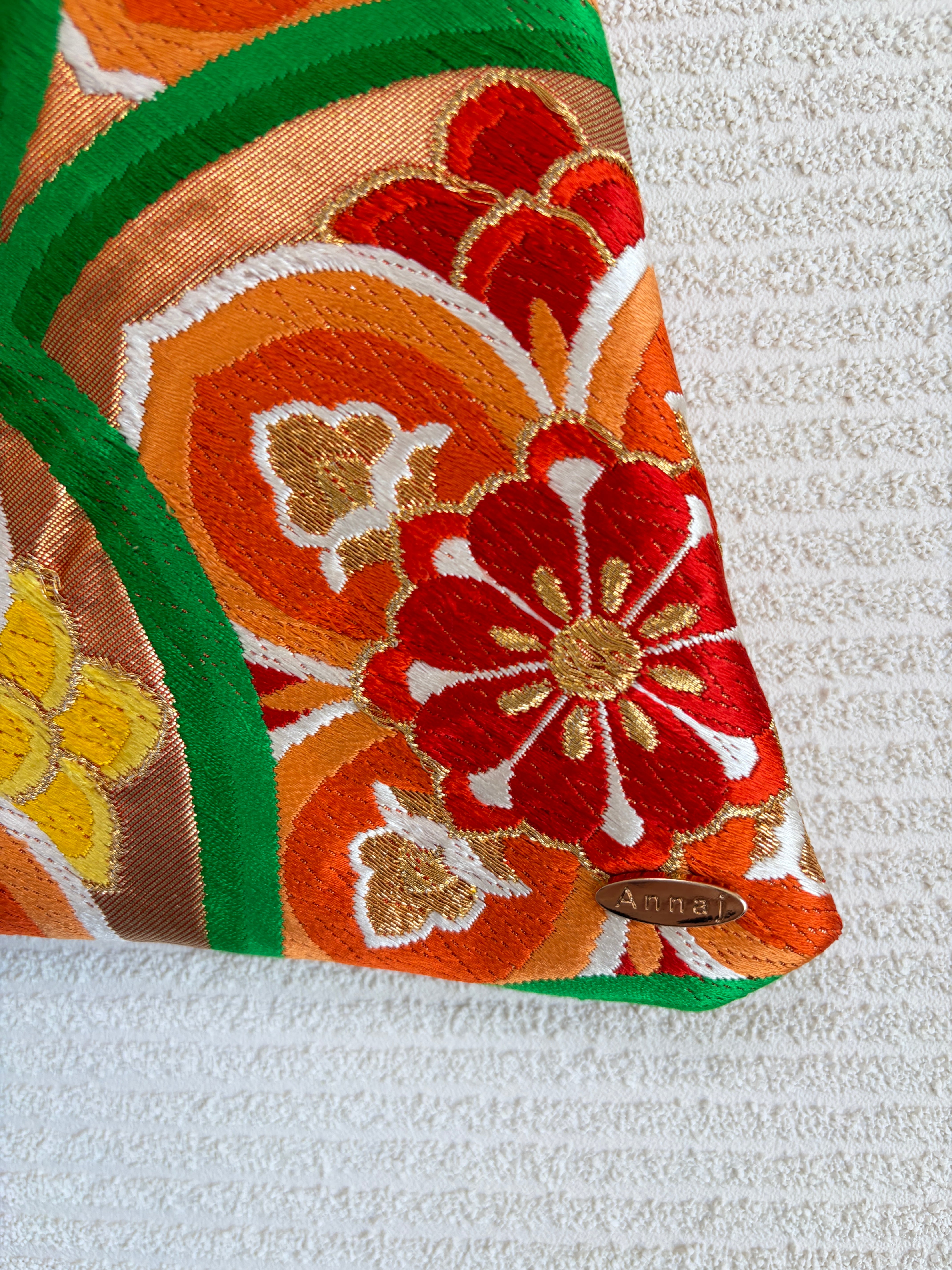 昭和のハレの日に使われた華やかな着物や帯を使用しています。今ではすでに生産が終了している貴重な素材や織を使用しているものもあります。