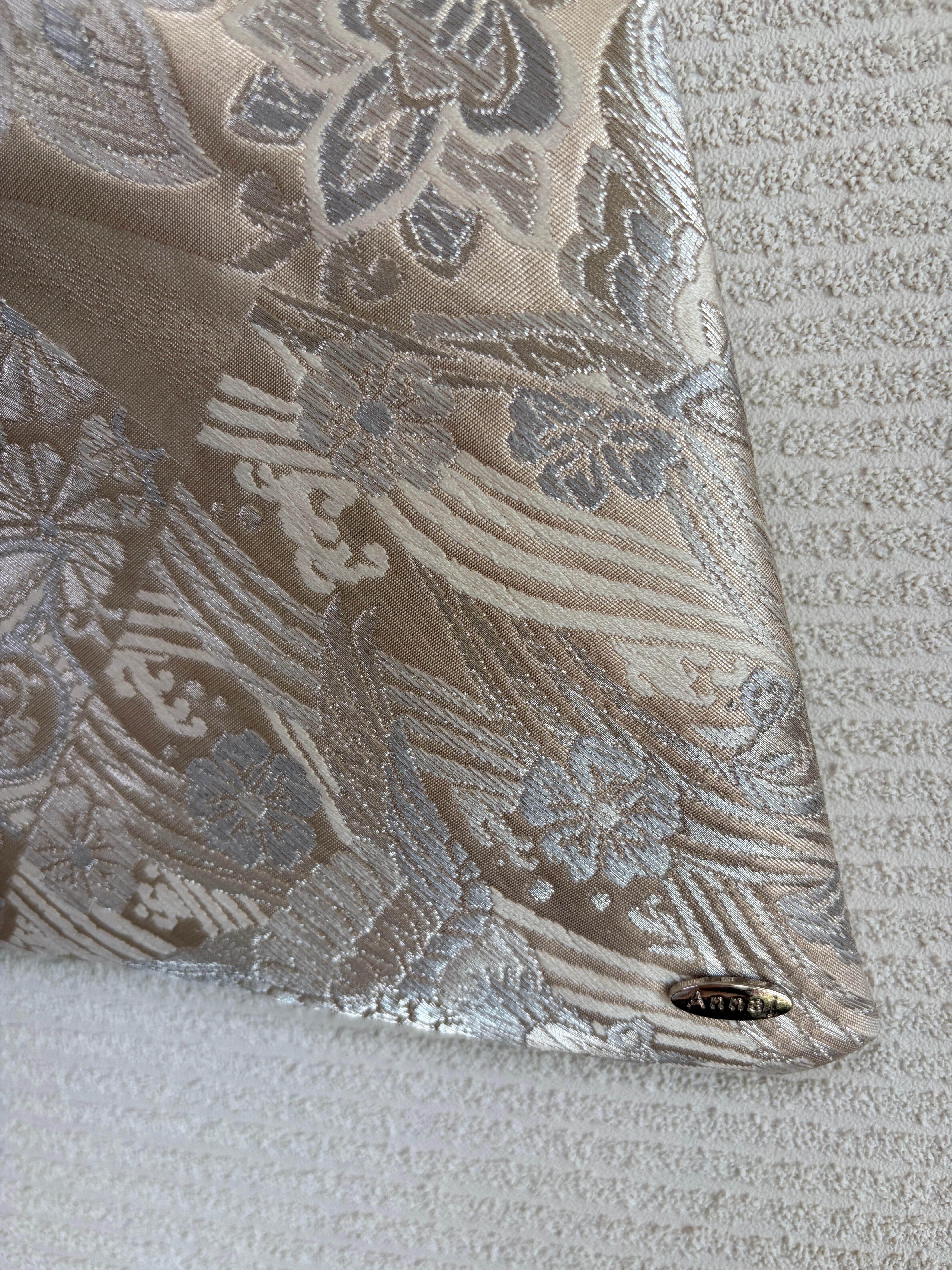 サイズについて : 金型で統一に裁断し、熟練の職人の手て縫製していますが、着物や帯や帯締めは、1つ1つ厚みが違いますので刺繍が多く、厚みのある帯などはサイズが少し小さくなったりするなど、多少サイズの誤差が生じる場合があります。どうぞご理解の程、お願い申し上げます。