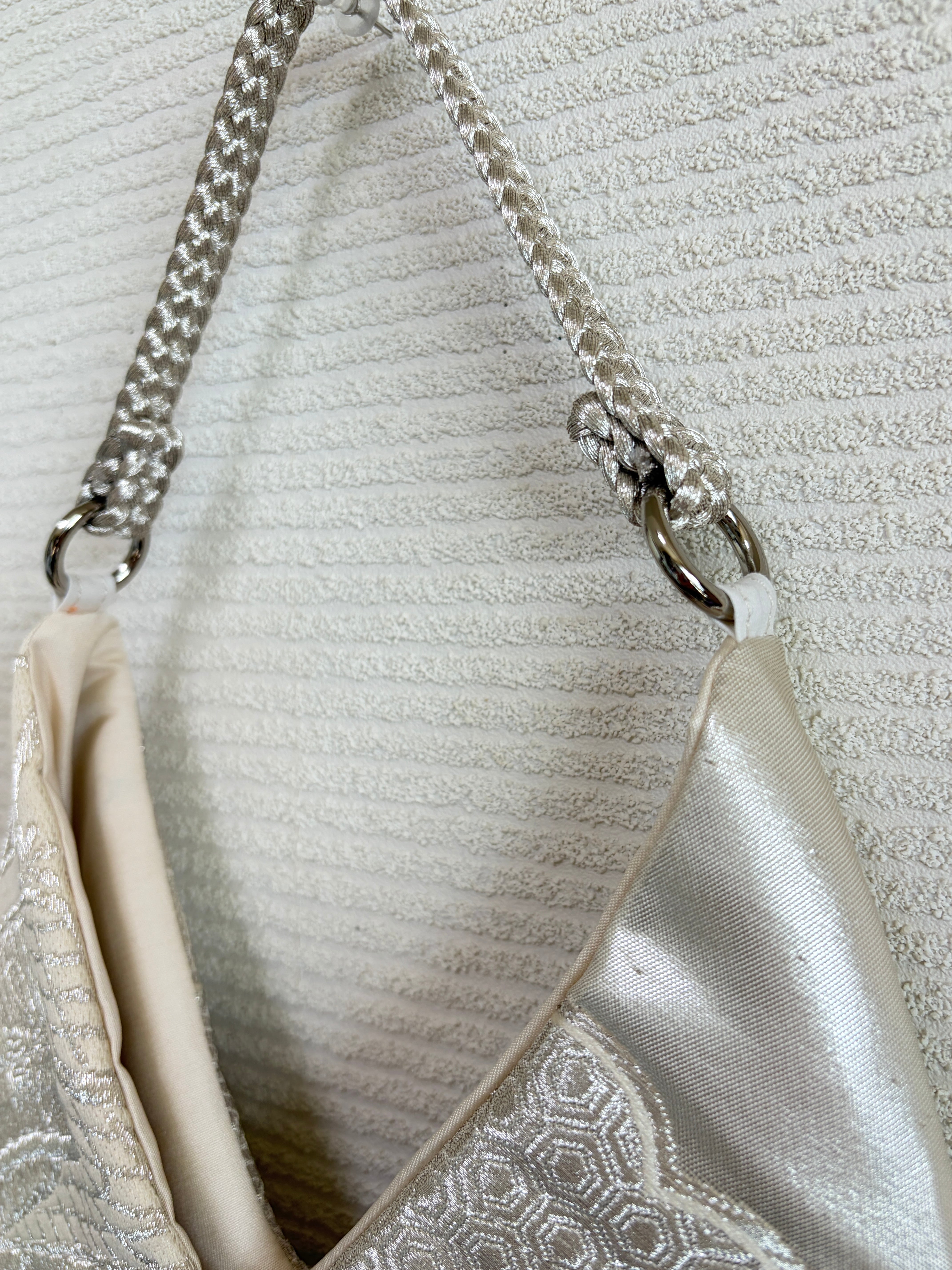 生地について : 使用している着物や帯や帯締めは以前使われていた、またはストックしていたものを使用しています。よって折りジワや小さなシミや汚れや傷や劣化などある場合があり、注意を払ってそれらを除いて使用はしておりますが、まれに残っているものもございます。時間の経過や古い時代のもの、新品ではないものをリサイクルし、アップサイクルしている、ということをご理解のほど、どうぞ宜しくお願い申し上げます。