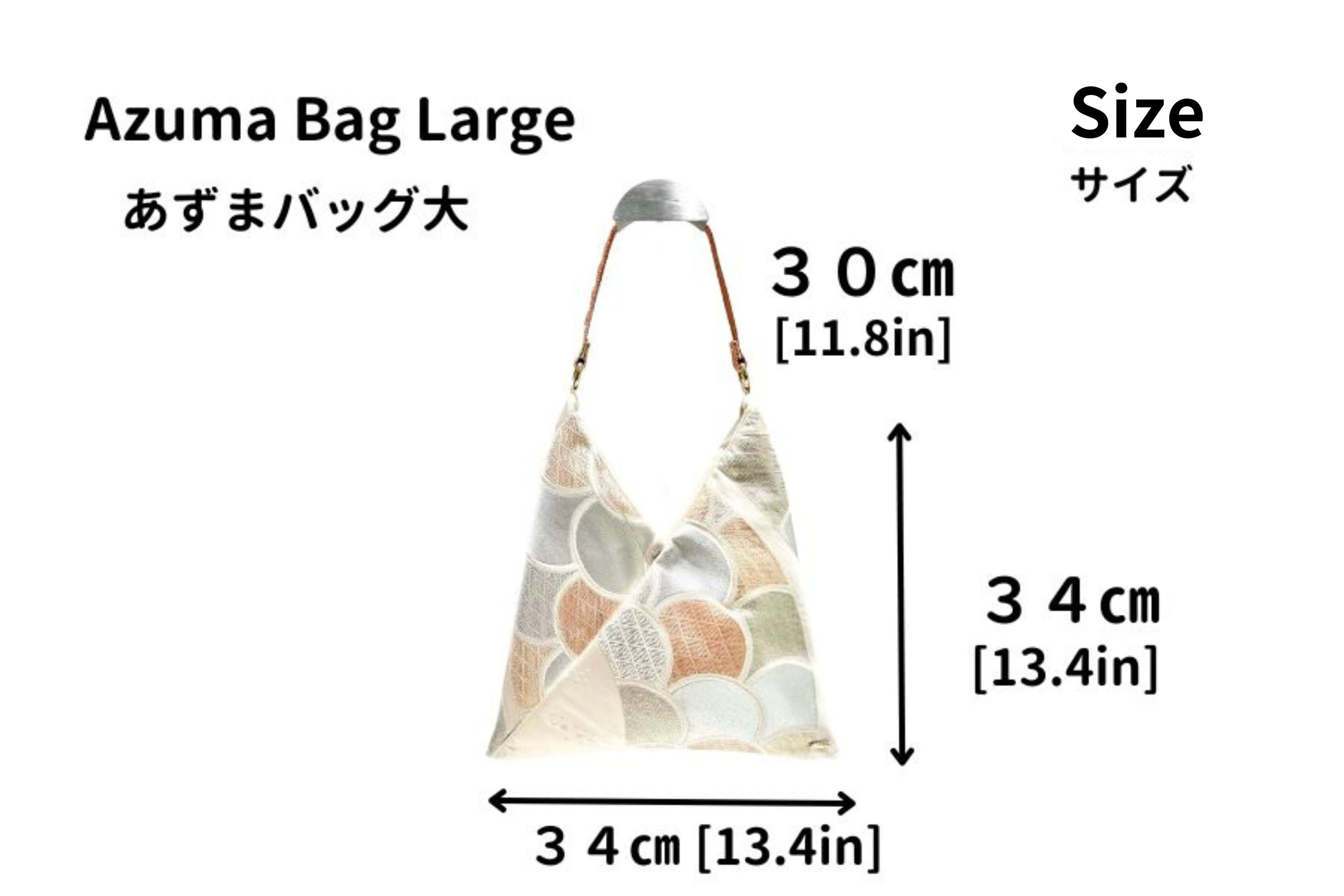 あずまバッグ大は、伝統的な帯を使ったアイテムでありながら、モダンなスタイルにもマッチするデザインとして、幅広い年齢層の方に愛されています。是非、お気に入りの一点ものバッグとしてお楽しみください。