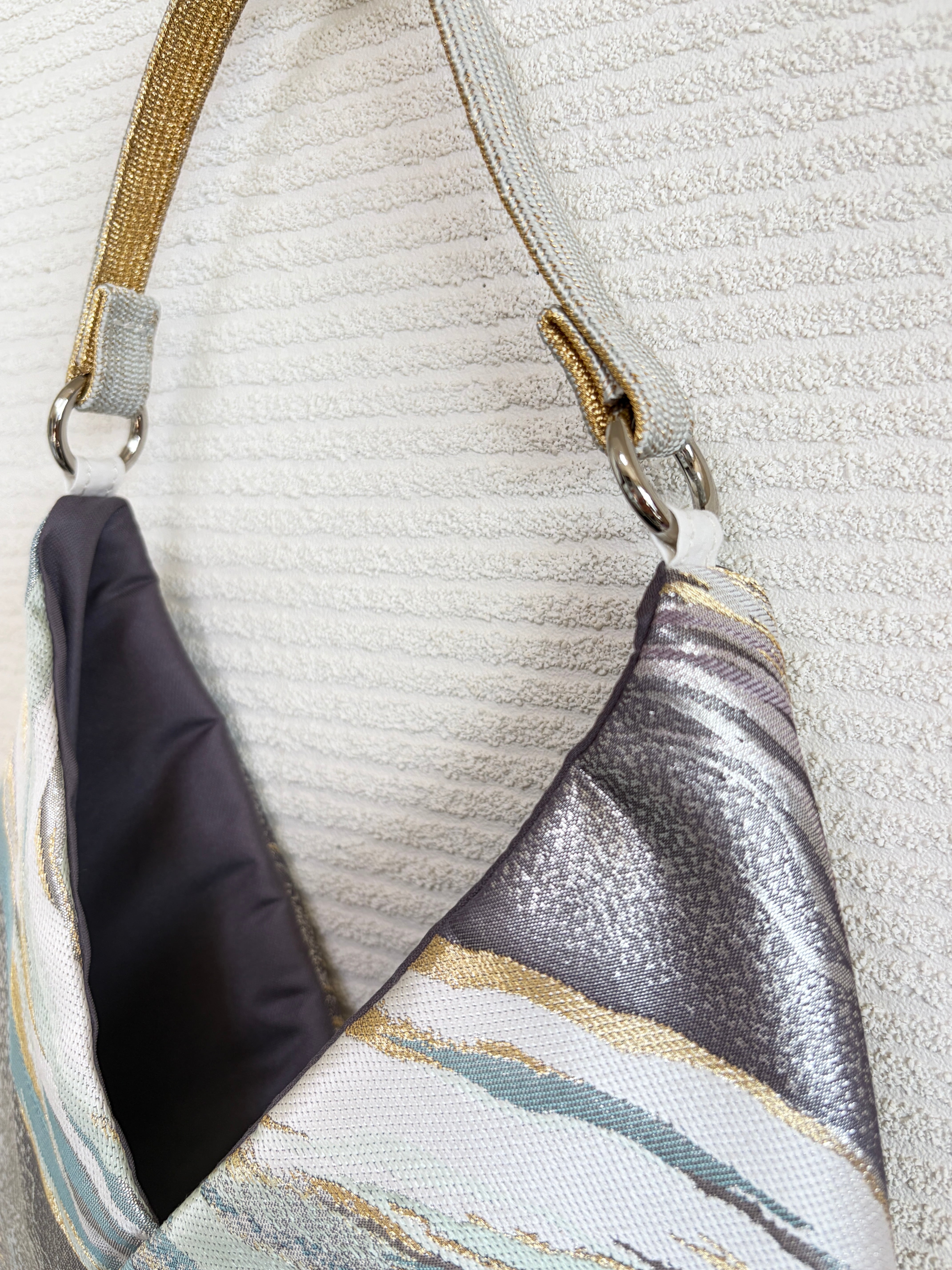 あずまバッグ大は、伝統的な帯を使ったアイテムでありながら、モダンなスタイルにもマッチするデザインとして、幅広い年齢層の方に愛されています。是非、お気に入りの一点ものバッグとしてお楽しみください。
