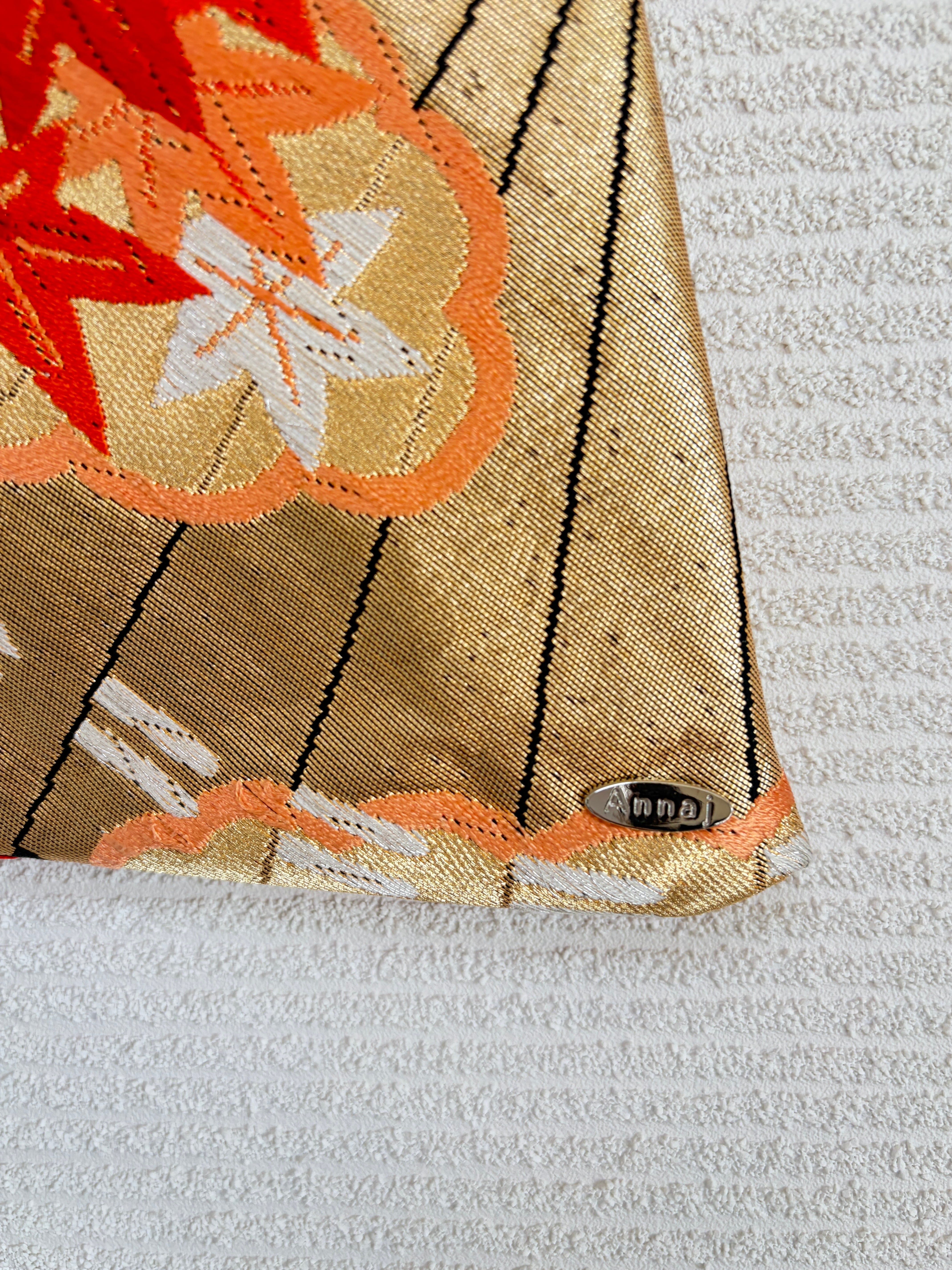 生地について : 使用している着物や帯や帯締めは以前使われていた、またはストックしていたものを使用しています。よって折りジワや小さなシミや汚れや傷や劣化などある場合があり、注意を払ってそれらを除いて使用はしておりますが、まれに残っているものもございます。時間の経過や古い時代のもの、新品ではないものをリサイクルし、アップサイクルしている、ということをご理解のほど、どうぞ宜しくお願い申し上げます。