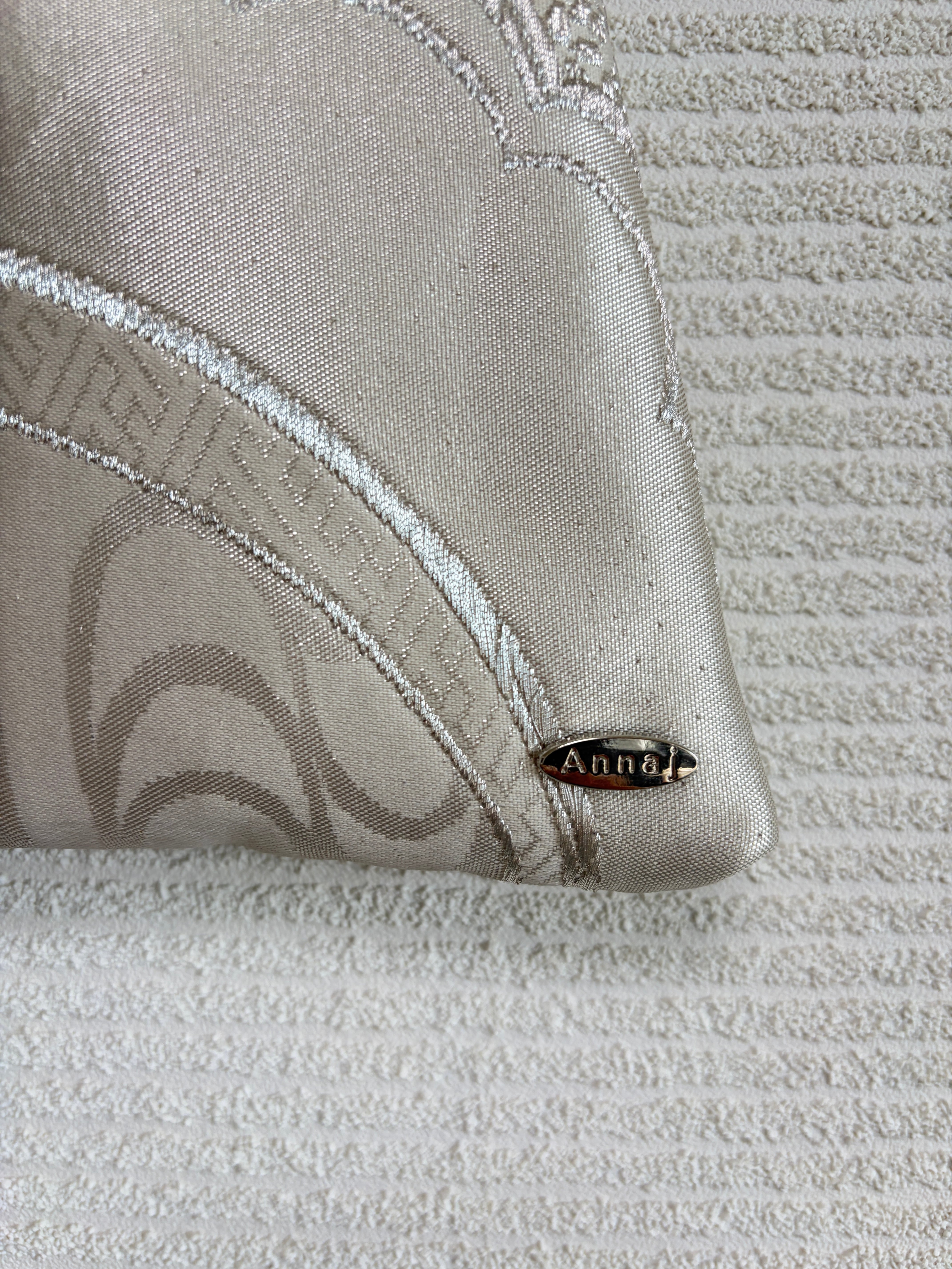 【柄の意味】扇面文様を中心に雲や流水などの優雅な文様が織り込まれた、気品あふれる意匠です。扇は末広がりの形から「繁栄」や「発展」を意味する吉祥文様として知られ、未来が明るく開ける象徴とされています。背景に描かれた雲は「瑞雲」と呼ばれ、幸運や良い出来事の兆しを表現。流れるような流水文様は、清らかさと永続する生命の流れを示しています。全体が白銀で統一されたこの柄は、上品で格調高く、慶びの場にふさわしい格式ある文様です。