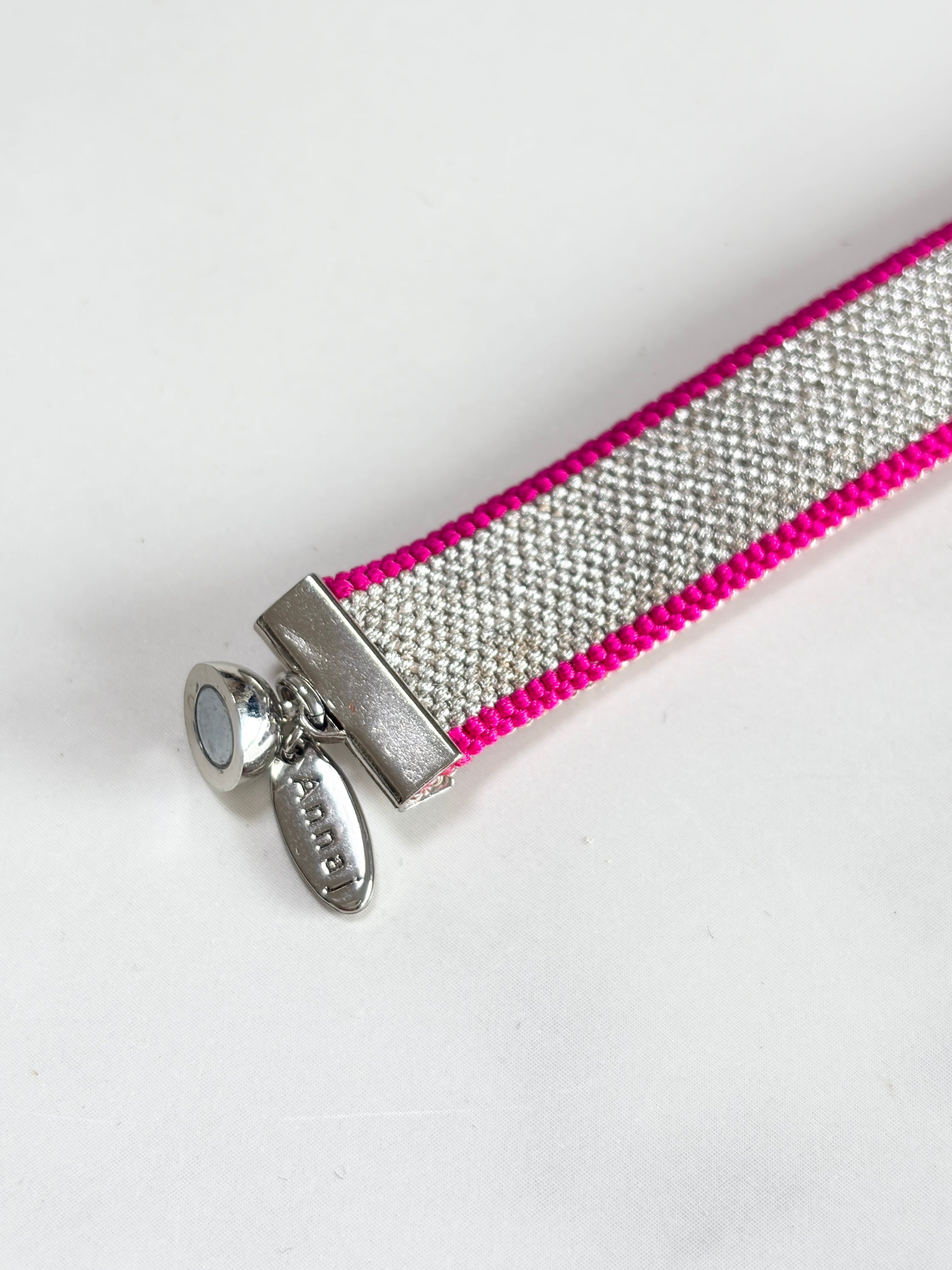 晴れの日を彩ってきた帯締めを、現代の装いに映えるバングルへとアップサイクルしました。丁寧に組み上げられた帯締めならではの立体感と、上品な光沢。和の気品を残しながらも、シンプルなフォルムで日常にも取り入れやすいデザインです。