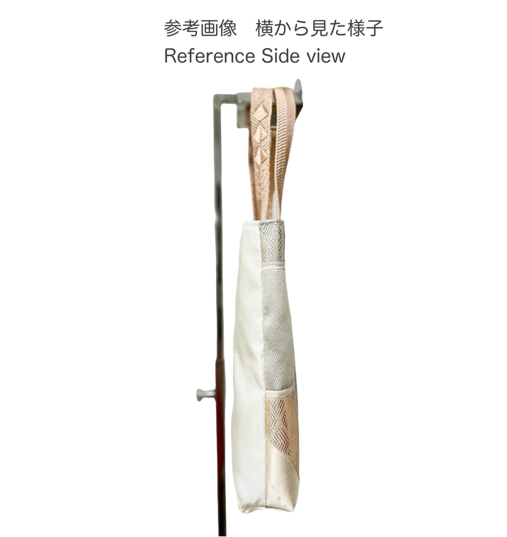 帯をアップサイクルしたミニトートバッグです。持ち手の部分には帯締めを使用し、バッグとの色や雰囲気を合わせています。外側の裏の生地には、表と同じ帯生地を使用しています。内側には小さなマグネットボタンがついているので、閉じることができます。こだわりを持った方へもオススメの一点物の商品です。お呼ばれやちょっとしたお出かけにもぴったりのサイズ感です。コーディネートのアクセントとしてご使用いただければと思います。国内はもちろん、海外の方のプレゼントとして喜んでいただけると思います。