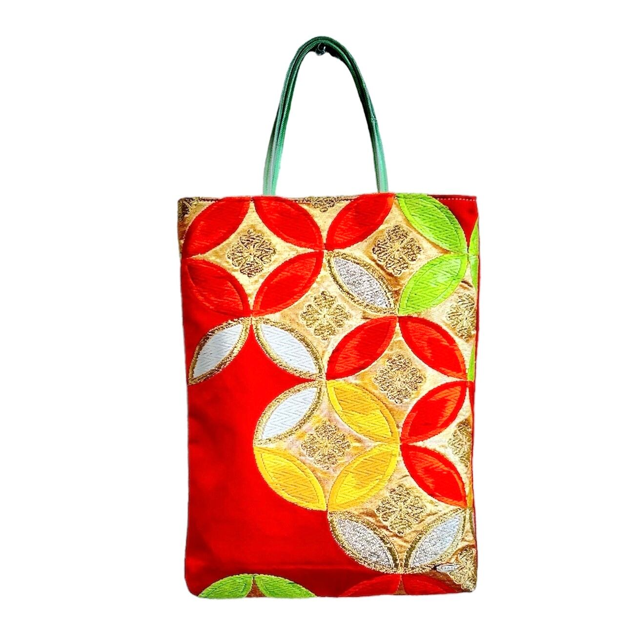 帯をアップサイクルしたバッグで、A4ファイルが入るトートバッグです。習い事や映画のパンフレットなども入れることができます。