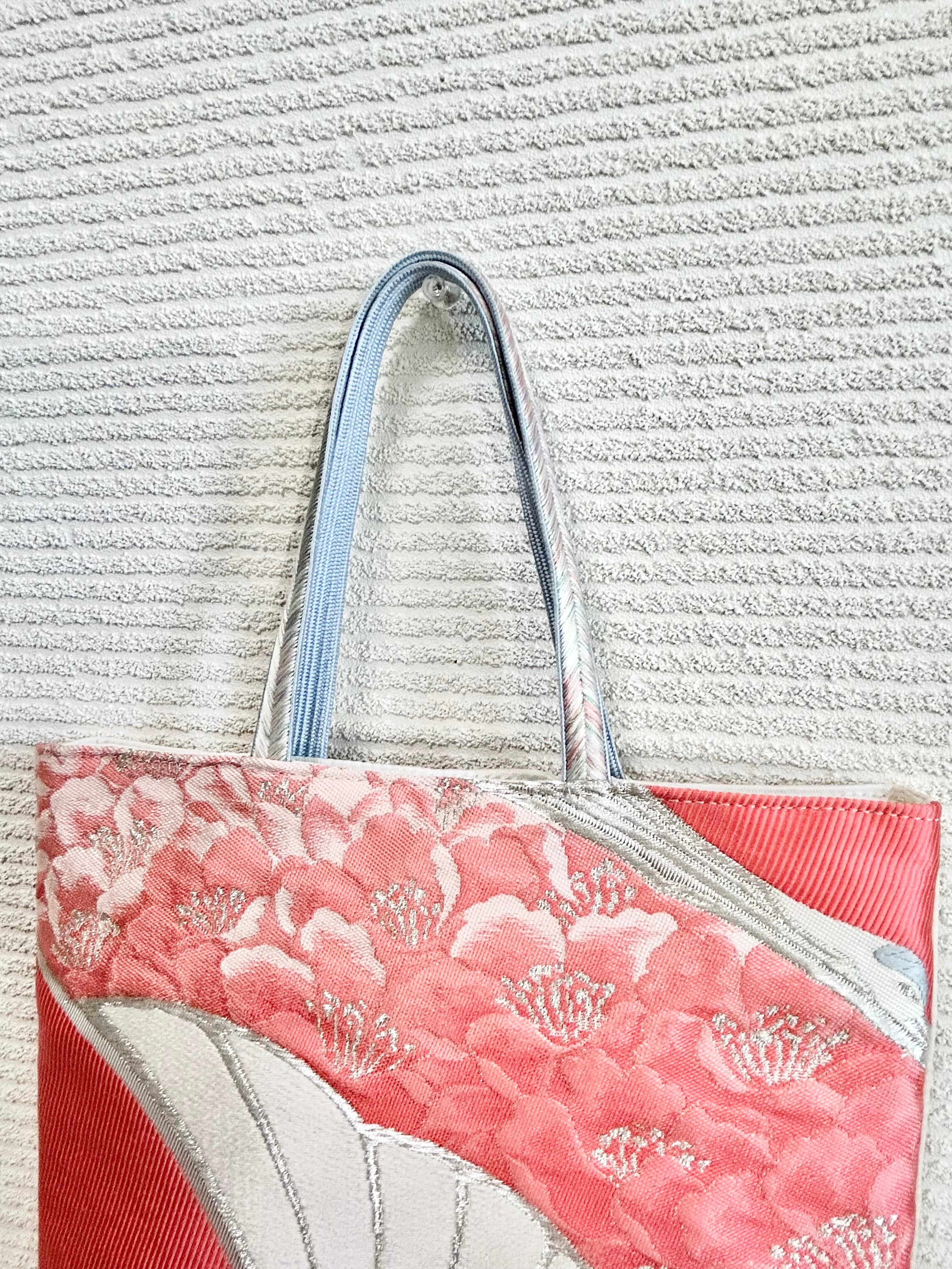 帯をアップサイクルしたバッグで、A4ファイルが入るトートバッグです。習い事や映画のパンフレットなども入れることができます。