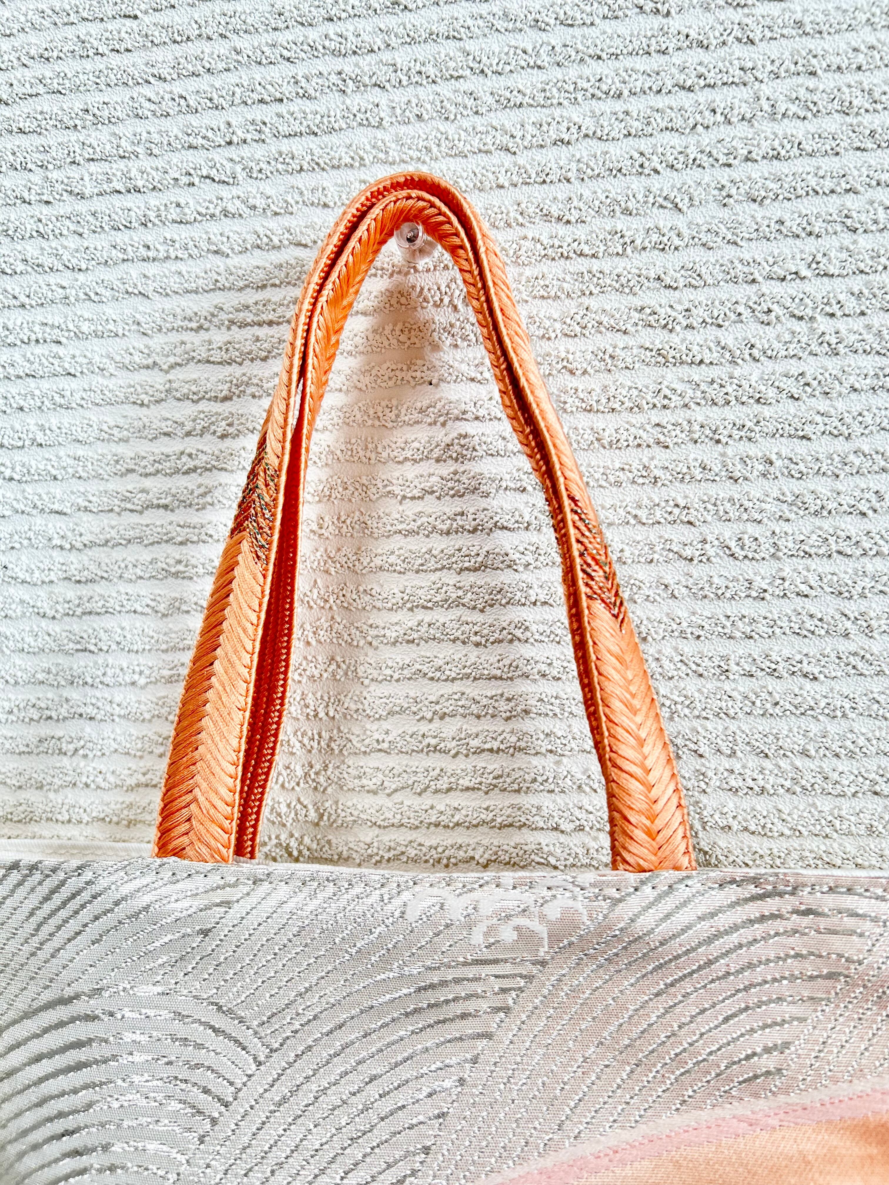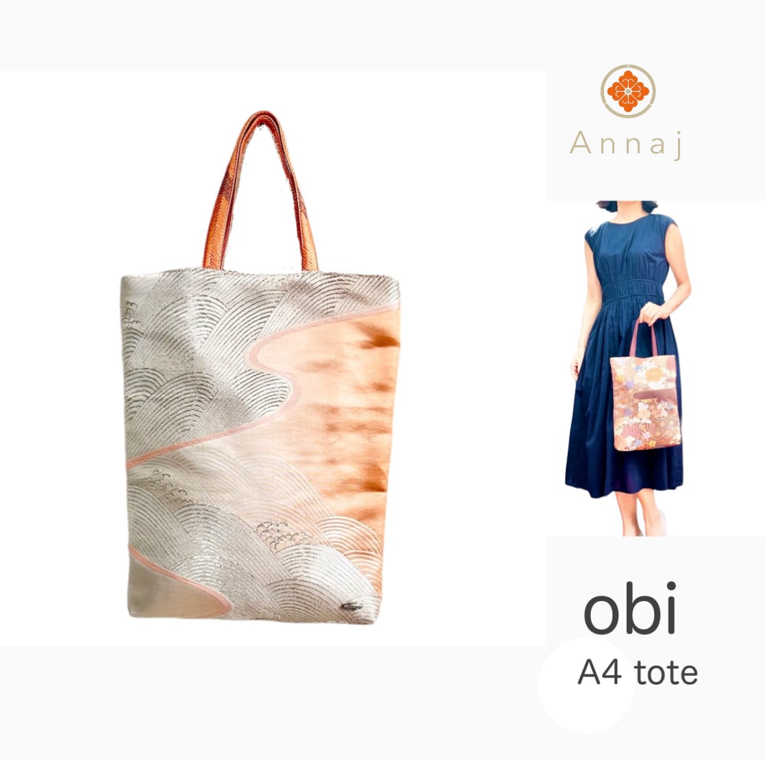 帯をアップサイクルしたバッグで、A4ファイルが入るトートバッグです。習い事や映画のパンフレットなども入れることができます。