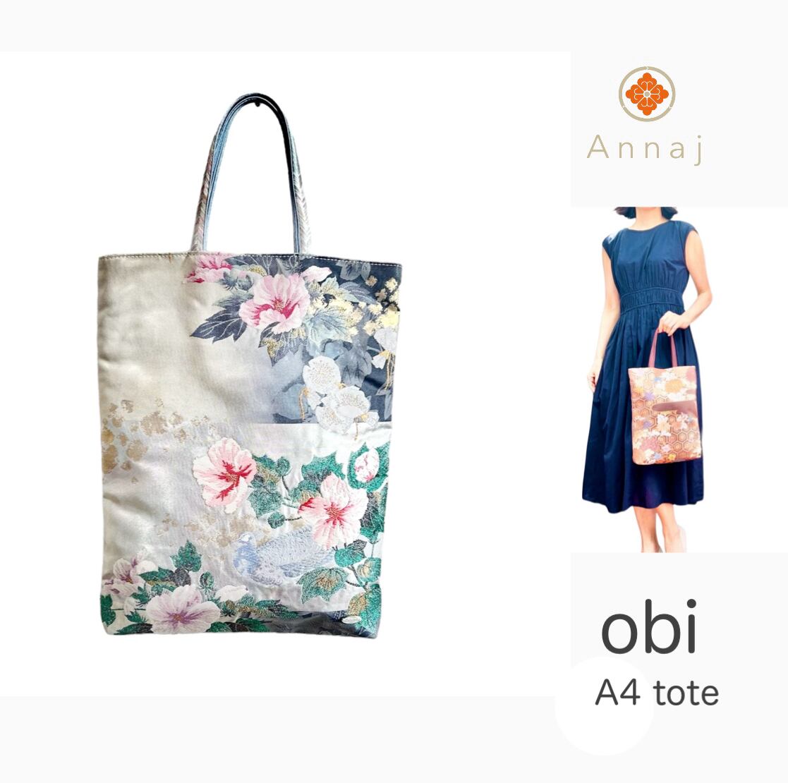帯をアップサイクルしたバッグで、A4ファイルが入るトートバッグです。習い事や映画のパンフレットなども入れることができます。