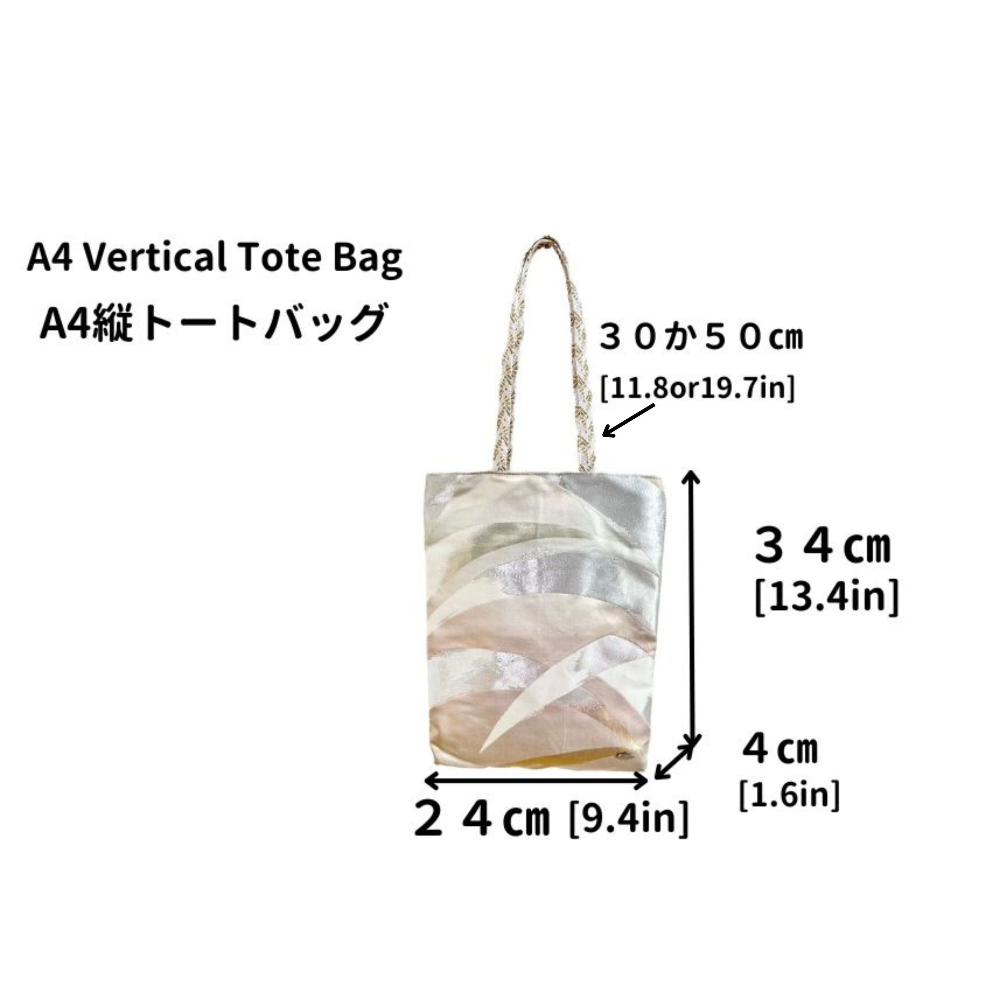 外側には、歴史を感じさせる美しい帯の生地を使用。しっかりとした織りと伝統的な模様が、持つ人の品格を引き立てます。内側はしっかりとした作りで、A4サイズのファイルやノートがすっきりと収まるスペースが特徴です。カジュアルな外出にもぴったりです。