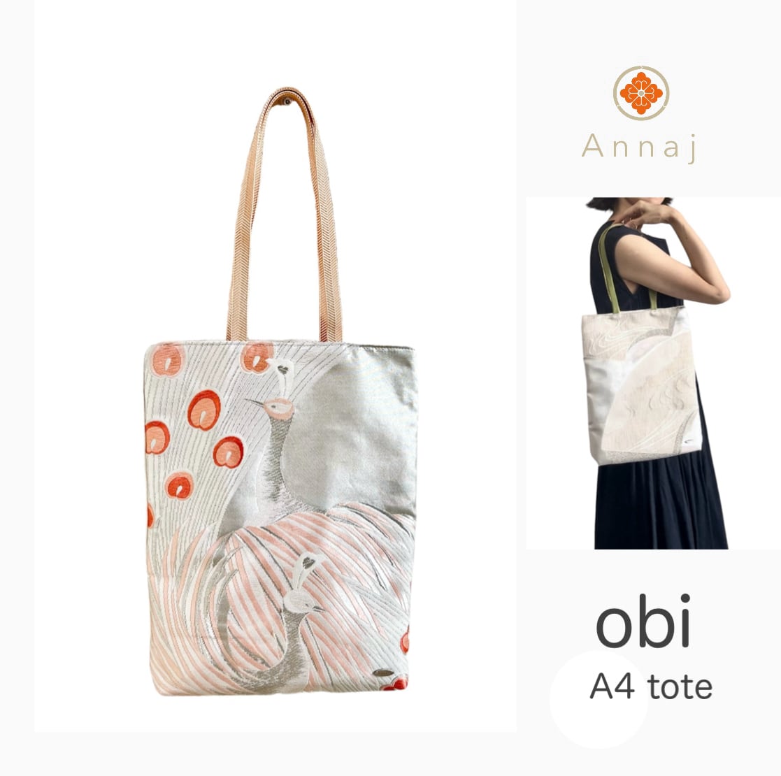 帯をアップサイクルしたバッグで、A4ファイルが入るトートバッグです。習い事や映画のパンフレットなども入れることができます。