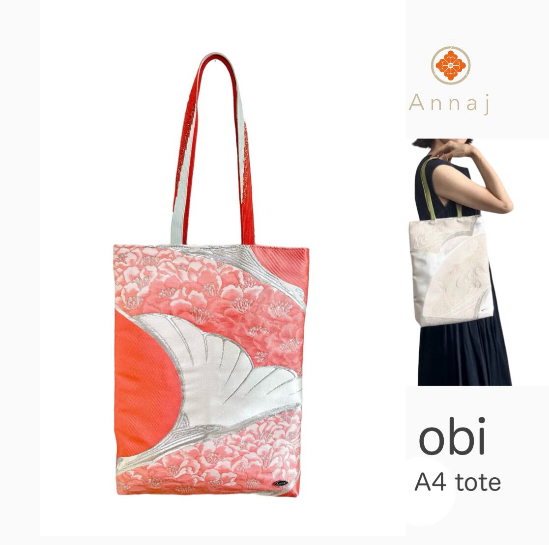 帯をアップサイクルしたバッグで、A4ファイルが入るトートバッグです。習い事や映画のパンフレットなども入れることができます。