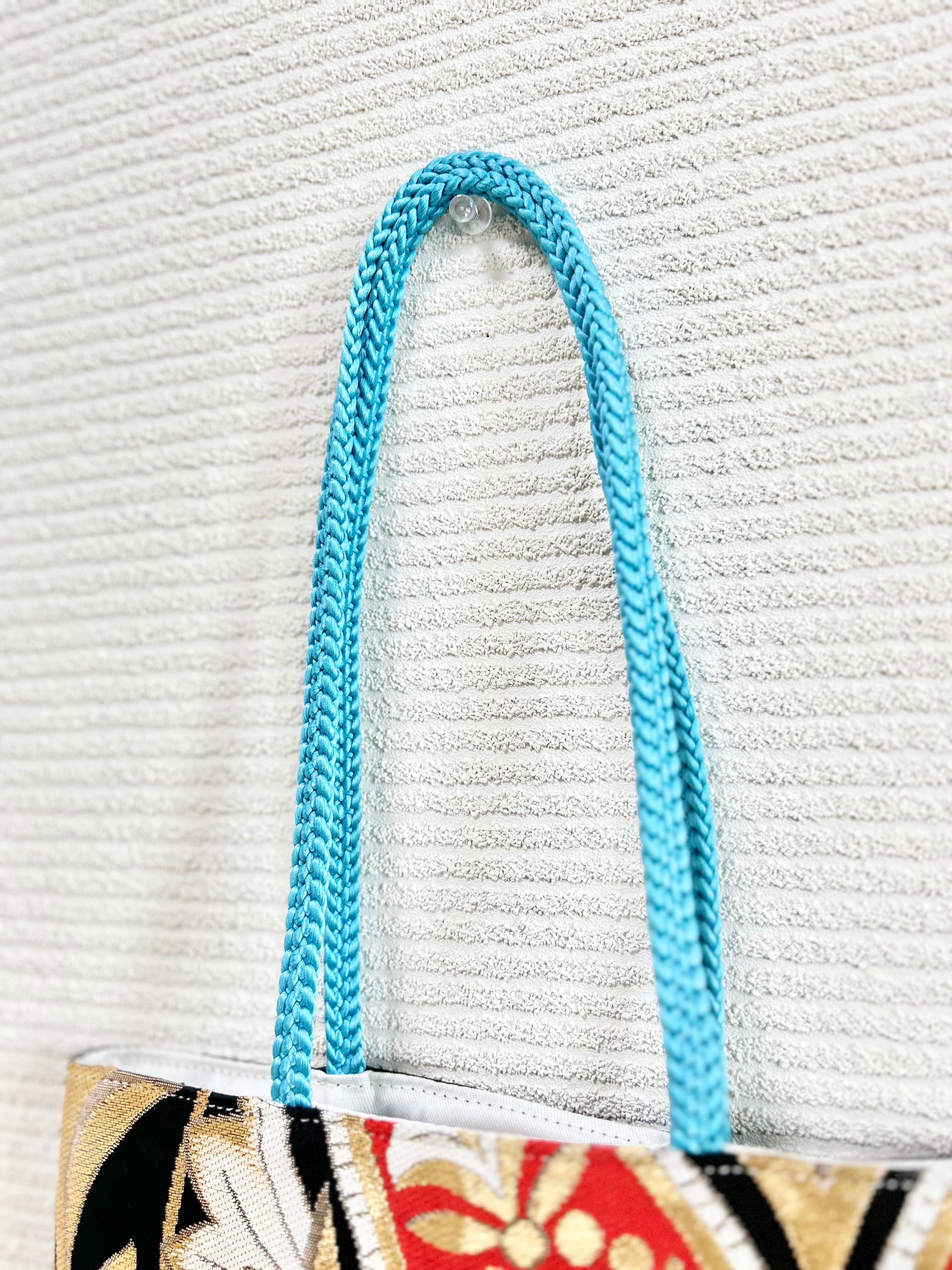 伝統美とエコ意識を融合させた、上質なトートバッグ。日本の伝統的な帯と帯締めをアップサイクルして作られた、エレガントで機能的なトートバッグは、日常使いに最適な一品です。