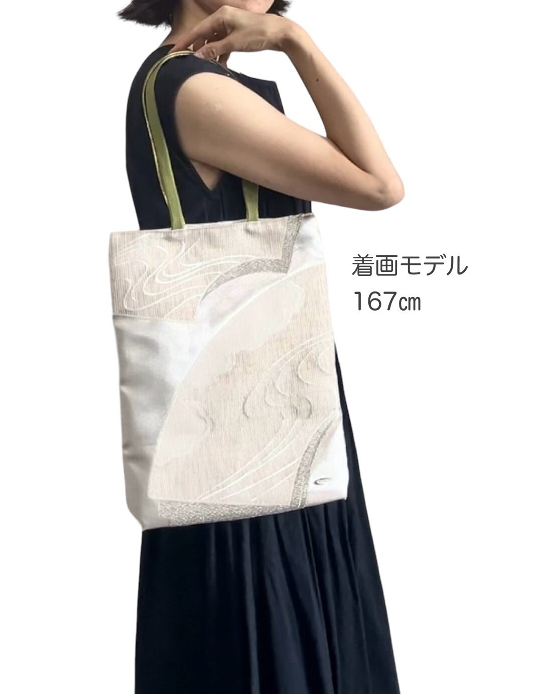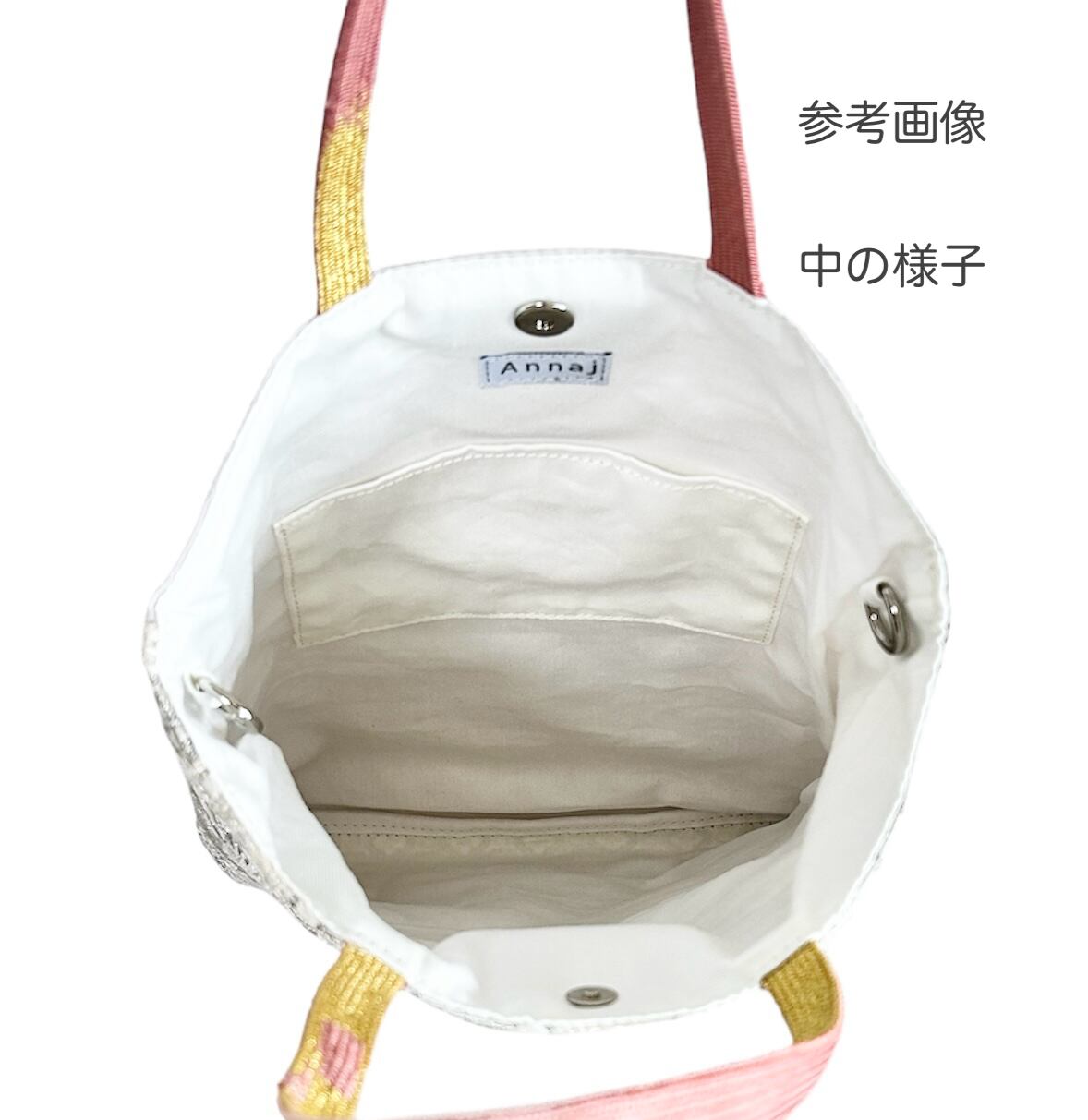 帯をアップサイクルしたバッグで、A4ファイルが入るトートバッグです。習い事や映画のパンフレットなども入れることができます。
