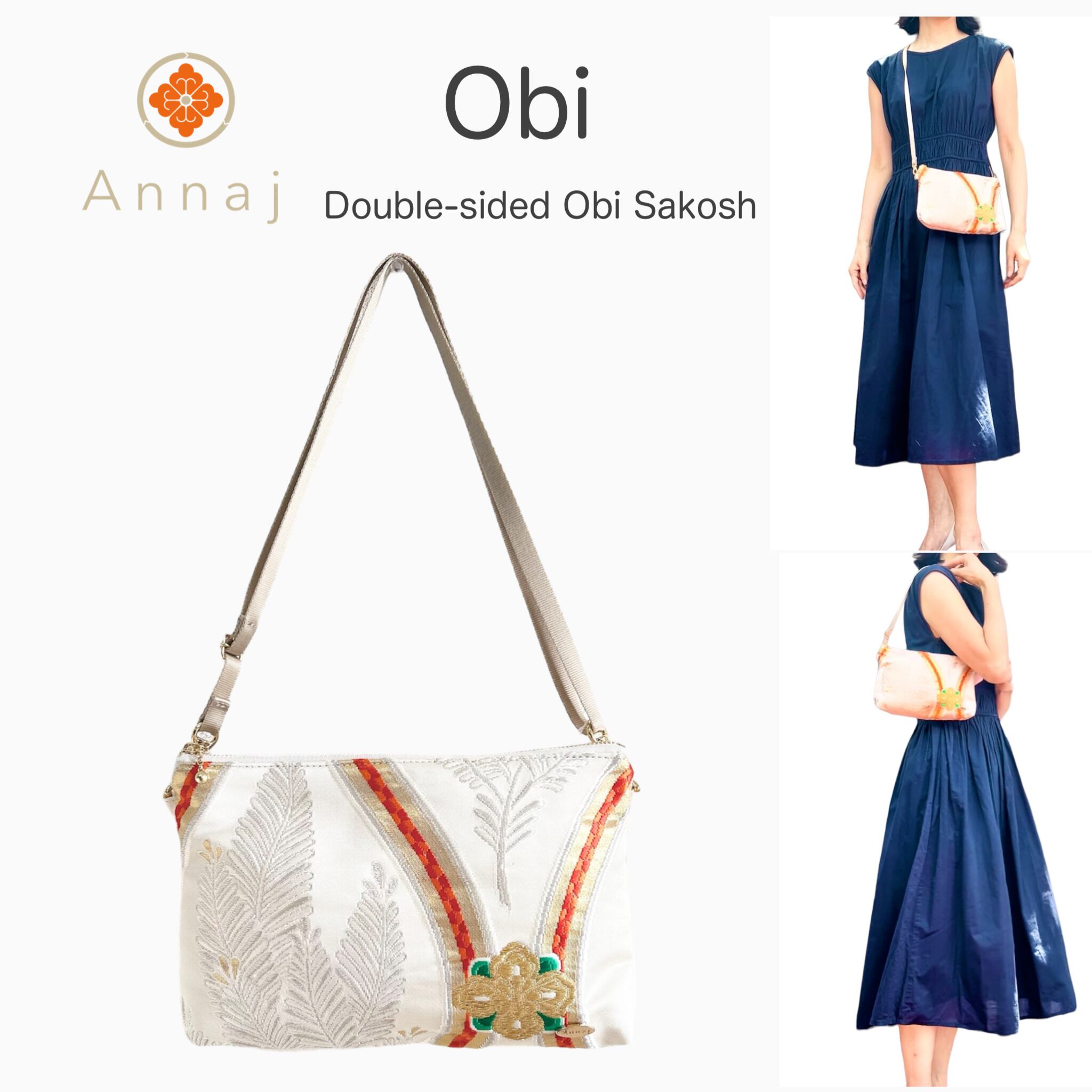 伝統とモダンの融合で魅力的なスタイルを楽しめる、アップサイクルされた帯を使用したサコッシュのご紹介です。帯の美しさを生かしつつ、現代の生活に合った機能性を兼ね備えた一品。シンプルながらエレガントなデザインが、日常に特別なアクセントを加えます。